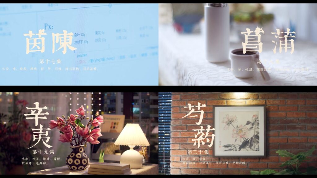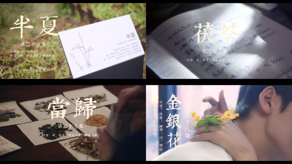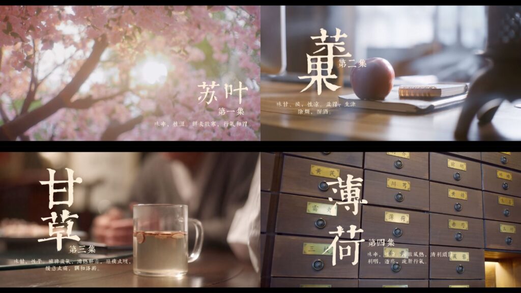 | 4 | 《薄荷》 | 味辛,性涼。 疏散風熱,清利頭目。 利咽,透疹,疏肝行氣。 | 蘇葉和惜凡一起逛超市,蘇葉買了嚴恆喜歡的同款薄荷口味飲料,讓惜凡想起嚴恆。 惜凡說中藥苦,蘇葉送她薄荷糖,薄荷與她所喝的藥藥性不衝突,她喝完藥可以嘗。 |