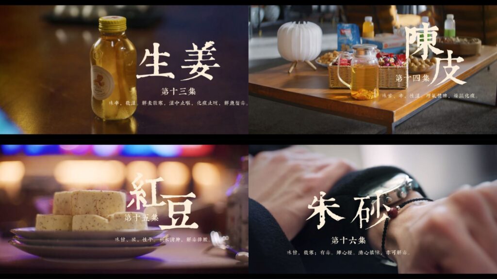 | 14 | 《陳皮》 | 味苦、辛,性溫。 理氣健脾,燥濕化痰。 | 第13集,外公泡陳皮水給正煩惱於研究計畫和感情的蘇葉。 |